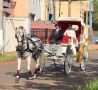 Carruagem estilo Vitória, Branca com detalhes em dourado e vermelho, capota conversível. Inspirada no modelo das carruagens utilizada no Central Park de New York Veiculo muito leve, Ideal para chegadas de eventos como casamento e debutantes em qualquer local e horário.